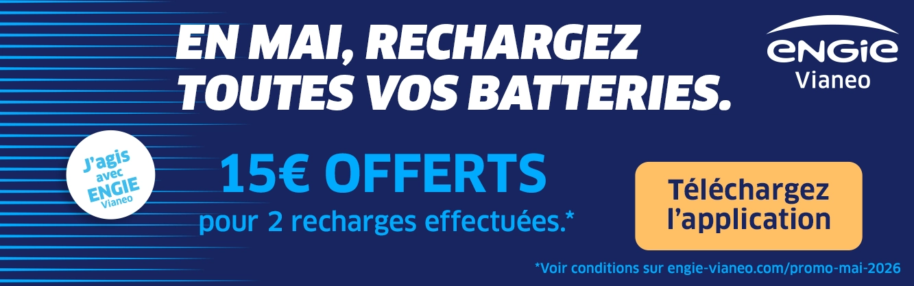 Adhérez gratuitement et profitez d’une expérience de recharge optimisée : l’application vous permet de localiser rapidement les bornes disponibles, de recharger en toute simplicité et de suivre votre historique en un clin d’œil. Avec ENGIE Vianeo+, le programme de fidélité gratuit et sans abonnement, vous cumulez 1 point pour chaque euro dépensé, à transformer ensuite en récompenses. En plus, bénéficiez automatiquement de 10 % de réduction sur le tarif public et accédez à vos reçus de paiement en quelques secondes. Recharger devient plus pratique et plus avantageux.